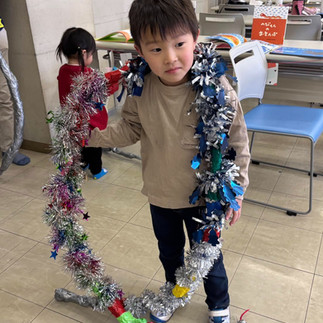 今年の干支は巳年ということで『ガムテープアート』でへびをつくります。